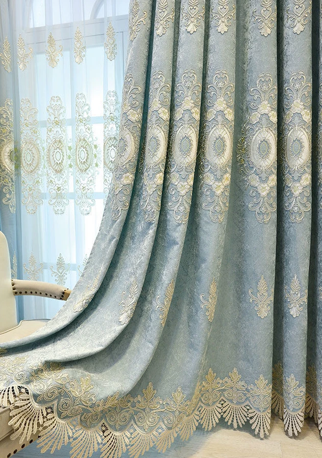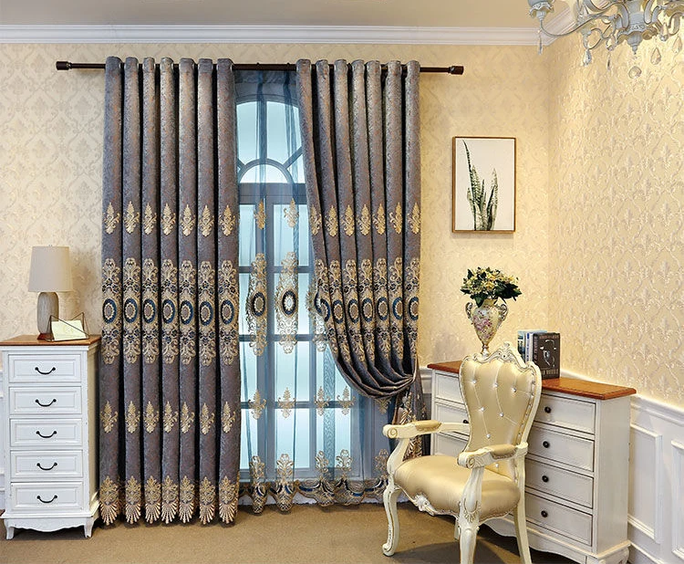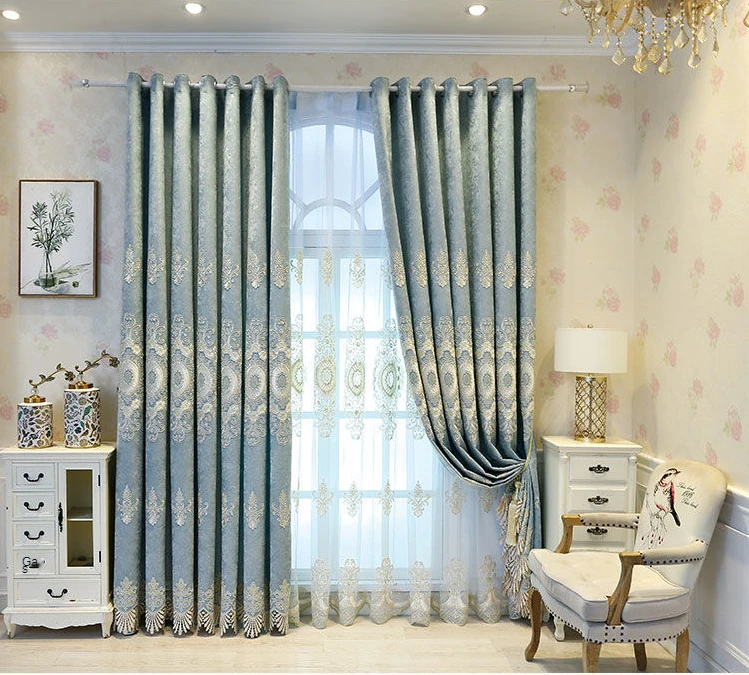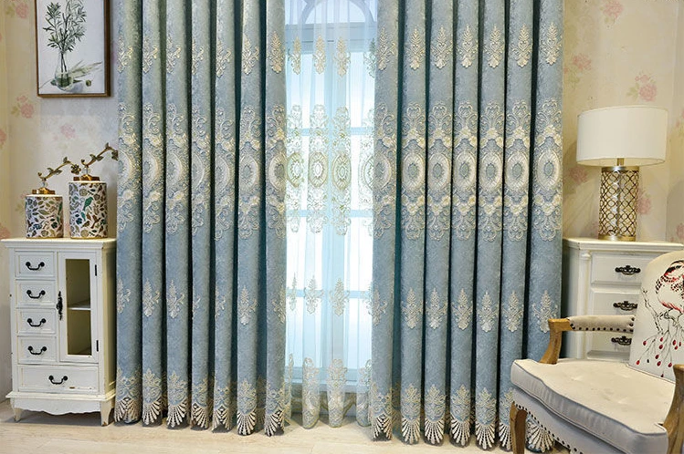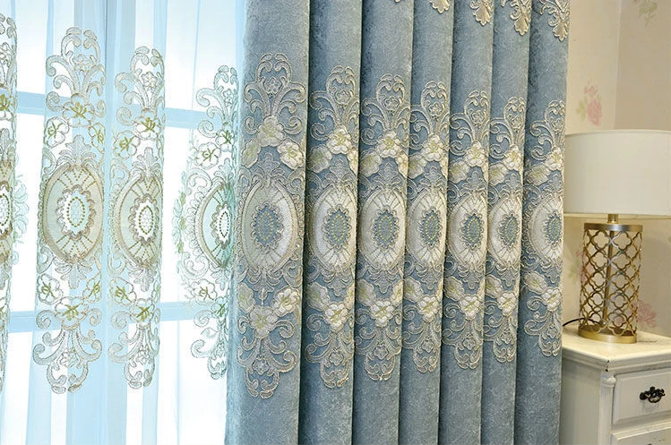 European Style Embroidered Custom Luxury Blackout Curtains for Living Dining Room